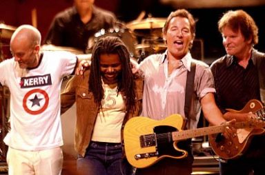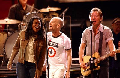 Springsteen and the E Street Band were joined by R.E.M., Tracy Chapman and John Fogerty for a stellar performance for a packed house ready to hear a partisan message about putting a new administration in the White House in November.